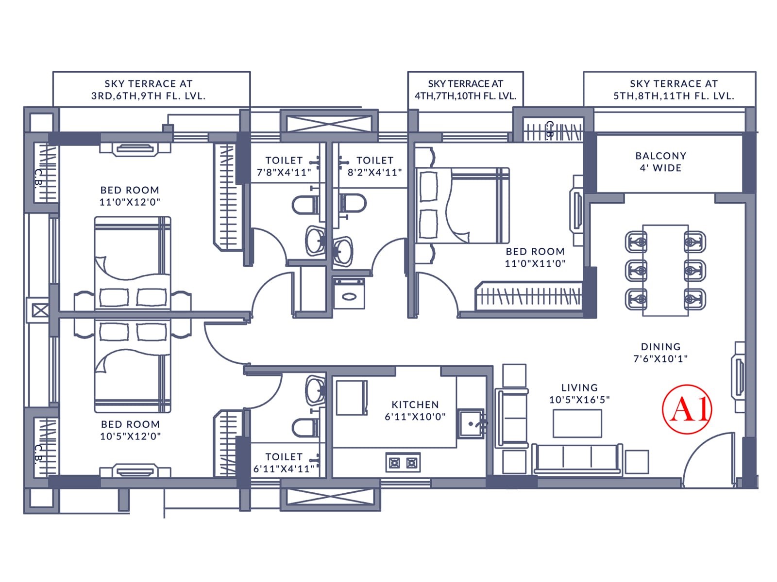 | 4 BHK Onwards | 4 | 3 | 1930 Sq.Ft Onwards | 1.42 Cr Onwards |
