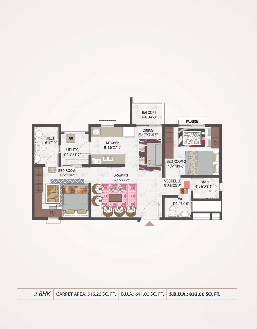 | 2BHK | 2 | 2 | 515 Sqft. | 5.5 Cr. |