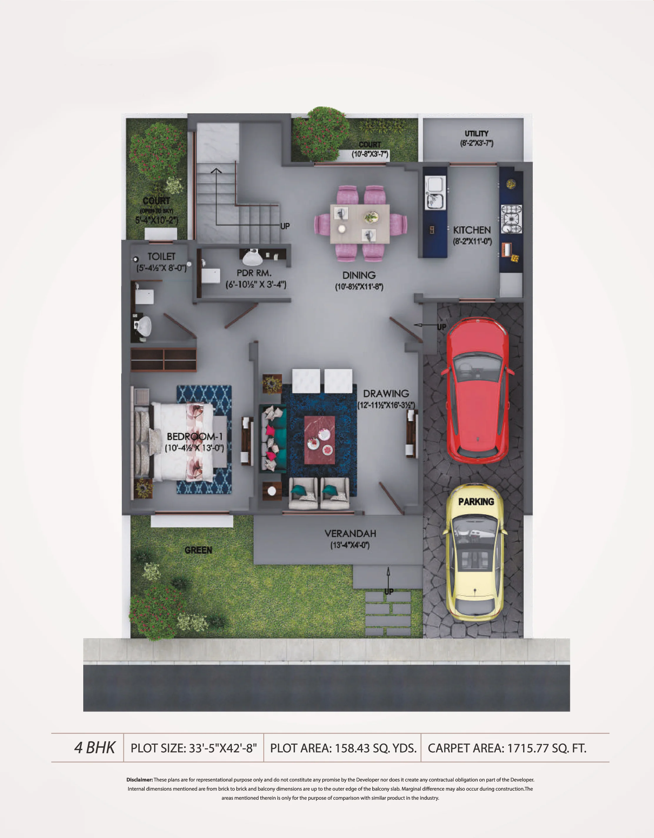 | 4BHK | 4 | 4 | 1715 Sqft. | 5.5 Cr. |